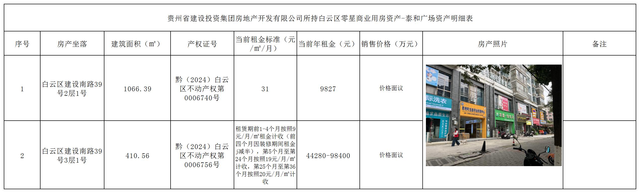 (預(yù)披露)貴州省建設(shè)投資集團(tuán)房地產(chǎn)開發(fā)有限公司所持白云區(qū)零星商業(yè)用房資產(chǎn)出售
